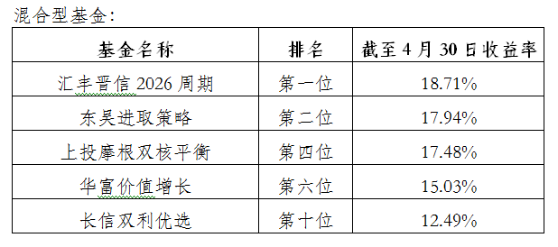 今年以來(lái)業(yè)績(jī)排名觀察(截至4.30)