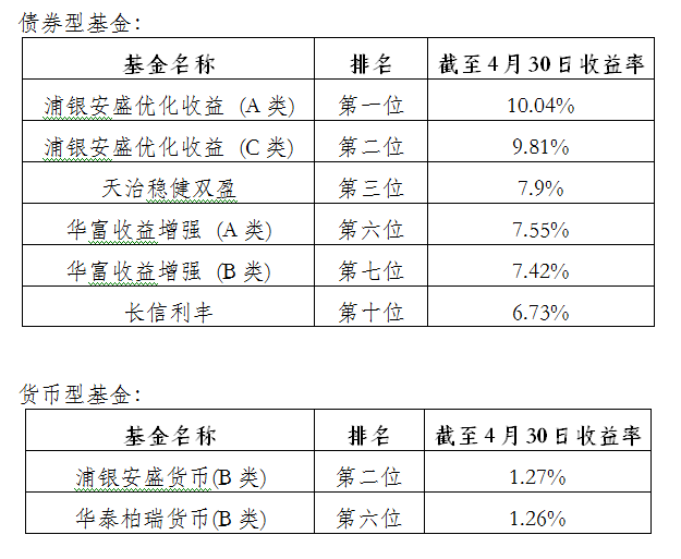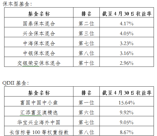 公會(huì)對(duì)今年以來(lái)截至4月30日各類型基金排名進(jìn)行了跟蹤觀察和小結(jié)。上?;鸸緲I(yè)績(jī)持續(xù)出色,包攬了除保本、貨幣外所有類型基金的第一名,其中上投摩根新興動(dòng)力繼去年勇奪股票型基金第三名后延續(xù)高增長(zhǎng)態(tài)勢(shì),以27.14%的收益率繼續(xù)領(lǐng)跑同類型基金,匯豐晉信2026周期、浦銀安盛優(yōu)化收益 (A類)、富國(guó)中國(guó)中小盤也分別在同類型基金排名中拔得頭籌。具體排名如下: