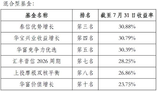 今年以來業(yè)績(jī)排名觀察(截至7.31)