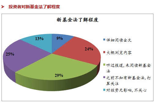 主要特征:對于新基金法,大多數(shù)投資者并沒有閱讀過,對其相關(guān)內(nèi)容不太感興趣,相關(guān)調(diào)查內(nèi)容也顯示投資者并不認(rèn)為新基金法與自己有較大關(guān)系。