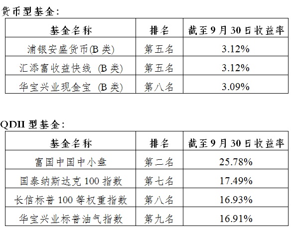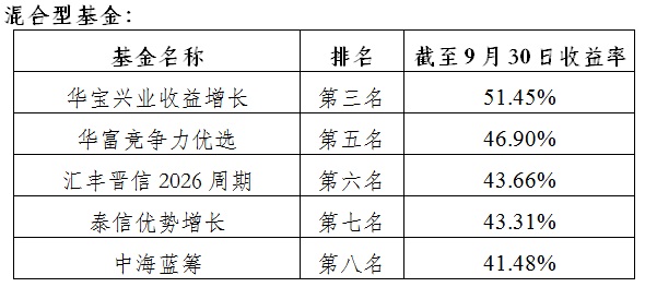 今年以來業(yè)績(jī)排名觀察(截至9.30)