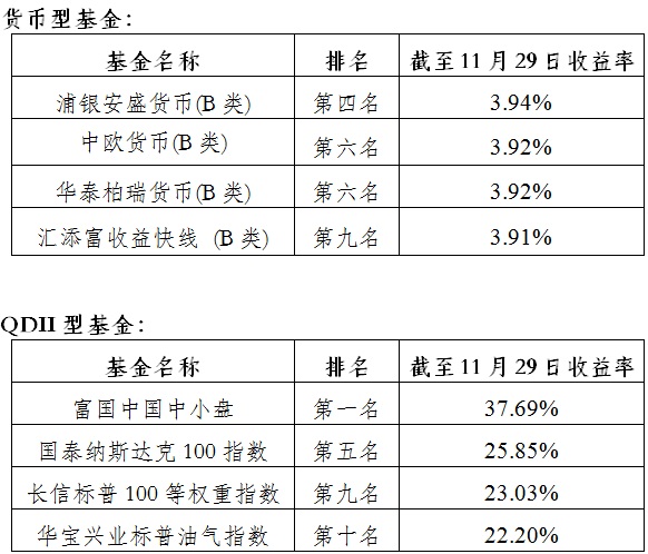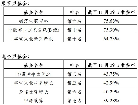今年以來業(yè)績排名觀察(截至11.29)