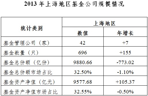 一、上海地區(qū)基金公司2013年總體發(fā)展情況: