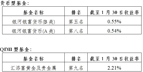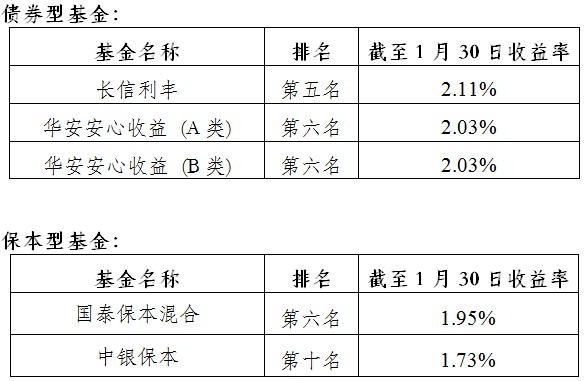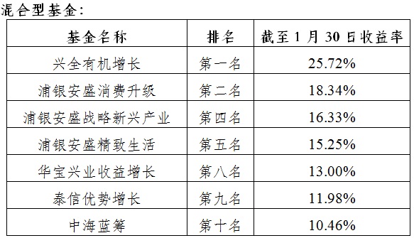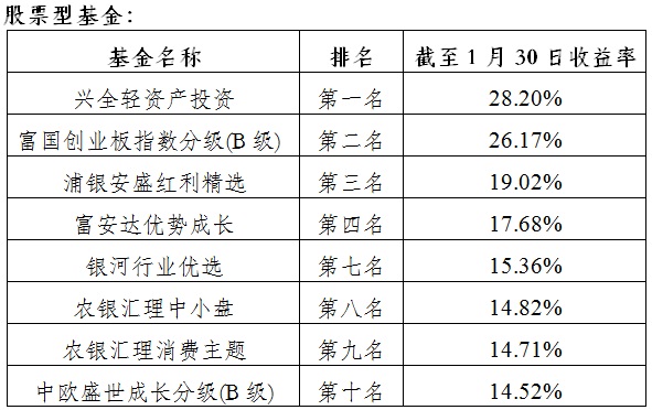 上海基金公司旗下基金今年以來業(yè)績排名觀察(截至1.30)