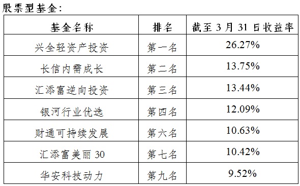 上海基金公司旗下基金今年以來(lái)業(yè)績(jī)排名觀察(截至3.31)