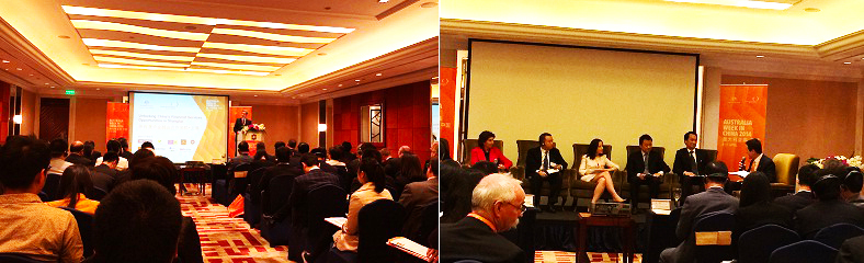 澳大利亞貿(mào)易和投資部長安德魯-羅伯議員和新南威爾士州州長Barry O’Farrell 先生向與會人員介紹了澳大利亞在金融服務(wù)、基礎(chǔ)設(shè)施、教育與研究、礦業(yè)、清潔能源、信息通訊技術(shù)和先進制造業(yè)等領(lǐng)域的成就和機遇。中國正在進行一次深刻的金融改革,人民幣國際化,利息市場化和民營銀行的建立都將進一步加強中澳雙方的合作,澳大利亞金融基礎(chǔ)設(shè)施配備完善,擁有高素質(zhì)的投資群體,愿意成為中國澳大利亞的金融深度合作的先鋒。