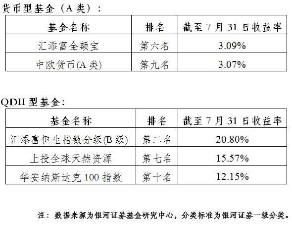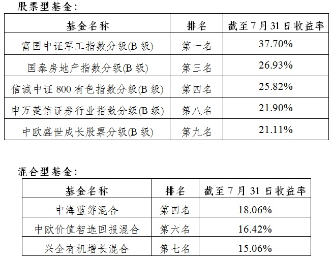 公會對上?;鸸窘衲暌詠斫刂?月31日各類型開放式基金的排名情況及整體收益情況進(jìn)行了觀察,伴隨7月份主要市場指數(shù)的上揚,股票型和混合型基金正收益比例大幅攀升,債券型基金QDII型基金絕對收益情況較好。具體排名情況如下: