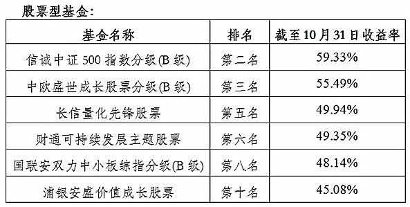 上海基金公司旗下基金今年以來業(yè)績排名觀察(截至10.31)