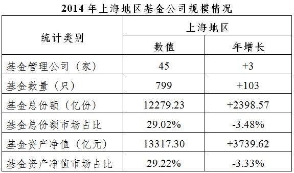 一、上海地區(qū)基金公司2014年總體發(fā)展情況: