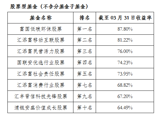 上海基金公司旗下基金今年以來業(yè)績排名觀察(截至03.31)