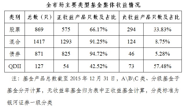 公會(huì)對(duì)上?;鸸窘刂?span lang="EN-US">2015年12月31日各類型開放式基金的絕對(duì)收益排名及整體收益情況進(jìn)行了觀察,全年主要市場(chǎng)指數(shù)先漲后跌,波幅較大,上海地區(qū)基金公司所管理的基金在權(quán)益類排名上有一定優(yōu)勢(shì)。具體排名情況如下: