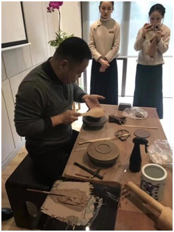 紫砂壺鑒賞和制作展示的相關(guān)內(nèi)容由國家級高級工藝美術(shù)師袁國強(qiáng)親自分享。他不僅介紹了紫砂壺制作的原材料、結(jié)構(gòu)以及如何辨別紫砂壺是否是手工制作等知識,還現(xiàn)場演示了紫砂壺制作過程中的手工拍打工藝,到場嘉賓近距離感受到了我國非物質(zhì)文化遺產(chǎn)的魅力。