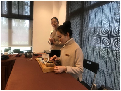 在品茶環(huán)節(jié),茶藝師現(xiàn)場講解品白茶的相關(guān)知識及沖泡技巧,引導(dǎo)大家靜下心來品一杯茶,并向到場嘉賓推薦了適合上班族的燜泡法。