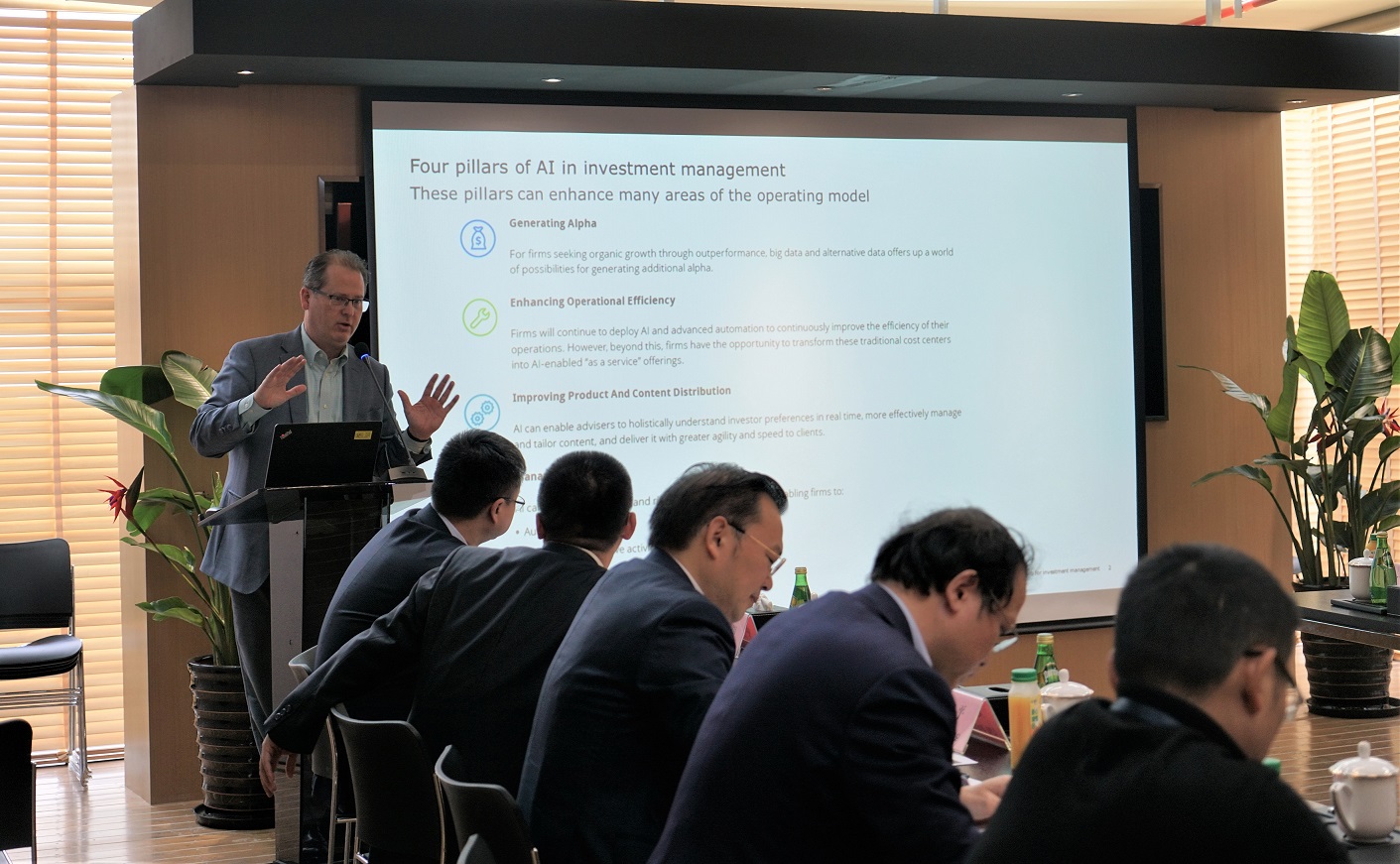 近年來(lái)人工智能(AI)技術(shù)發(fā)展迅速,對(duì)資產(chǎn)管理領(lǐng)域也產(chǎn)生了廣泛而深遠(yuǎn)的影響。3月15日,上海市基金同業(yè)公會(huì)舉辦“聚焦資管行業(yè)”研討會(huì),特邀遠(yuǎn)道而來(lái)的德勤美國(guó)金融服務(wù)中心投資管理研究負(fù)責(zé)人道格·丹米勒(Doug Dannemiller)先生,就人工智能在資管領(lǐng)域的最新應(yīng)用趨勢(shì)與上海地區(qū)部分基金公司的高管們分享交流。
