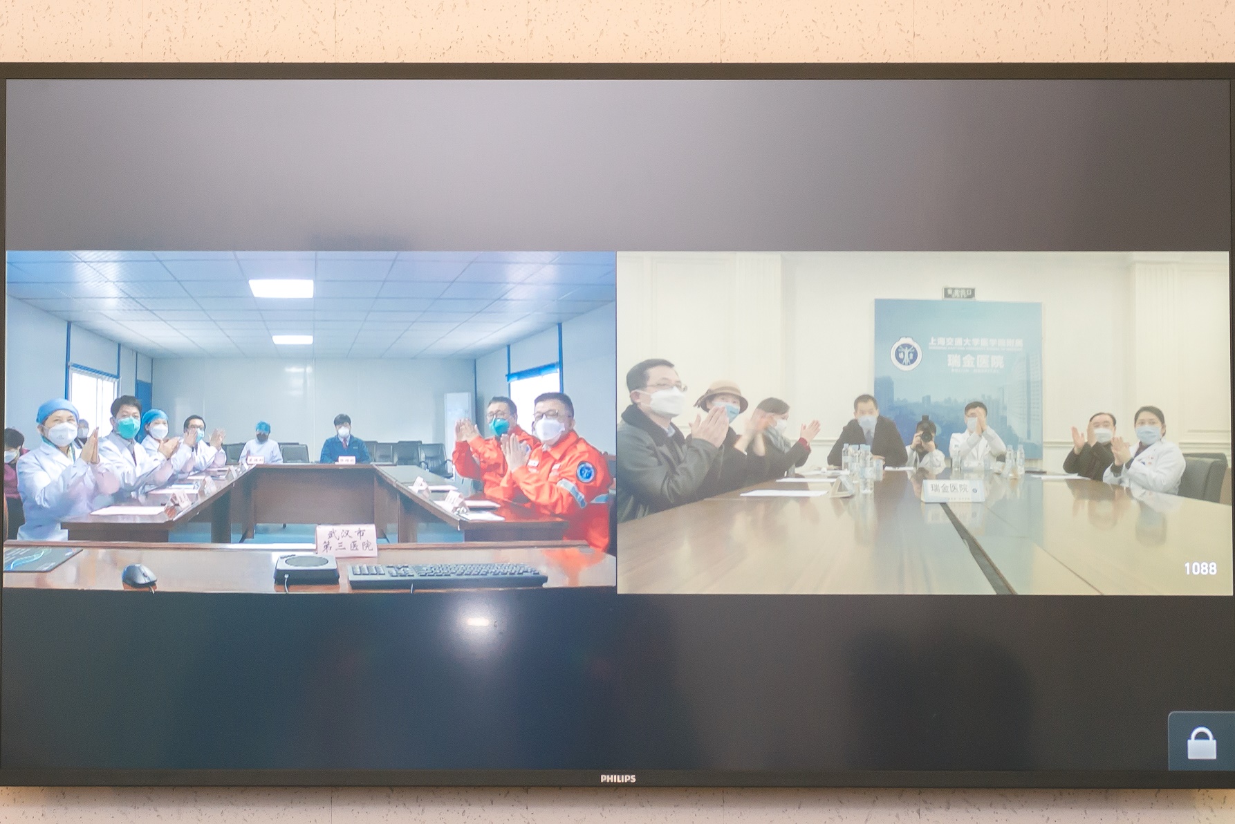 3月11日,一場特殊的捐贈(zèng)儀式在“云端”舉行。上海市醫(yī)藥衛(wèi)生發(fā)展基金會(huì)“上?;饦I(yè)致敬白衣天使專項(xiàng)基金”向武漢市第三醫(yī)院的捐贈(zèng)儀式在上海交通大學(xué)附屬瑞金醫(yī)院舉行。距離阻斷不了愛,捐贈(zèng)代表們通過視頻向遠(yuǎn)在千里之外的武漢市第三醫(yī)院醫(yī)務(wù)工作者和上海援鄂醫(yī)療隊(duì)成員送去了上?;饦I(yè)的敬意與慰問。