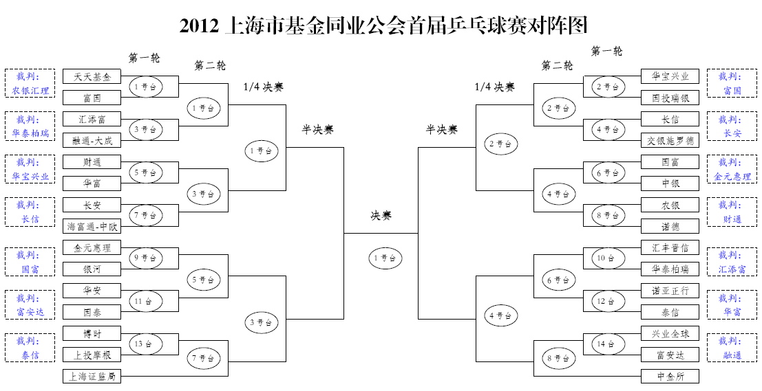 2012上海市基金同業(yè)公會(huì)首屆乒乓球比賽抽簽結(jié)果揭曉