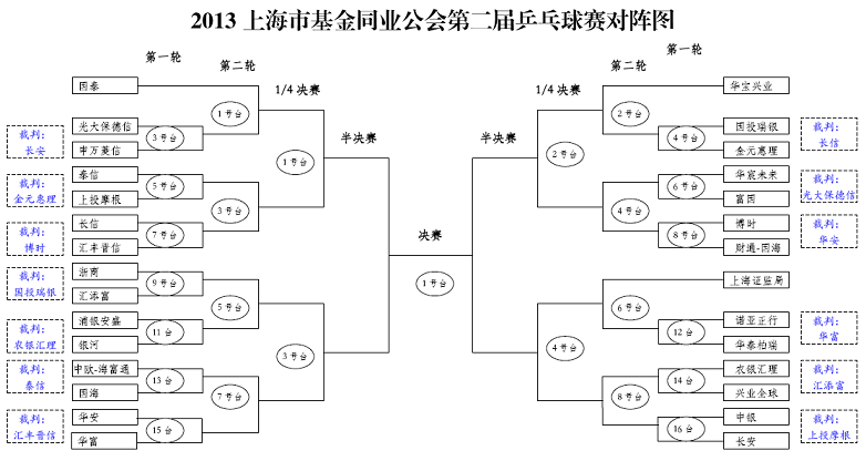 2013上海市基金同業(yè)公會(huì)第二屆乒乓球比賽抽簽結(jié)果揭曉