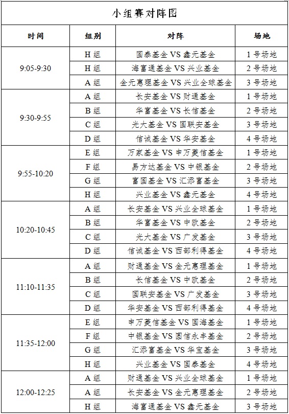 11月28日,上海市基金同業(yè)公會第十一屆“富國杯”籃球賽領(lǐng)隊工作會議召開。會上,26家參賽球隊就賽事規(guī)則、賽事安排、賽事紀律及其它相關(guān)事宜進行了討論,并達成會議共識。隨后,各參賽隊隊長進行了抽簽,26支球隊分出8個小組進行小組賽,具體分組情況賽事安排如下: