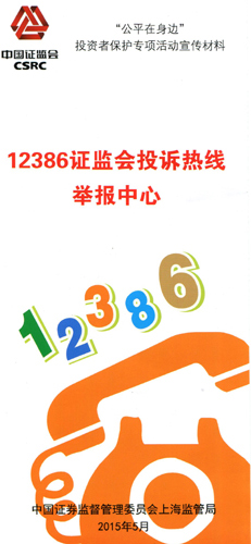 為拓寬投資者訴求處理渠道,助力市場(chǎng)健康發(fā)展,增強(qiáng)投資者信心。結(jié)合開(kāi)展“公平在身邊”投資者保護(hù)專(zhuān)項(xiàng)活動(dòng),公會(huì)現(xiàn)向各會(huì)員單位下發(fā)由中國(guó)證監(jiān)會(huì)上海監(jiān)管局制作的《12386證監(jiān)會(huì)投訴熱線(xiàn)舉報(bào)中心》的相關(guān)宣傳材料,進(jìn)一步推動(dòng)投資者教育保護(hù)工作,在牛市中體現(xiàn)基金管理人的社會(huì)責(zé)任。