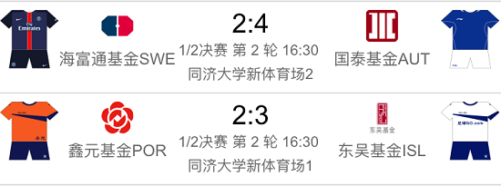 優(yōu)勝組進(jìn)入最終決賽以及三四名決賽的隊伍是:國泰基金、東吳基金、海富通基金和鑫元基金。
