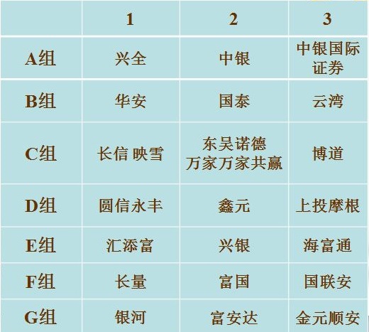 根據(jù)賽制,各參賽隊進(jìn)行小組抽簽,現(xiàn)場公布了小組賽比賽對陣情況。根據(jù)賽事規(guī)則,去年冠軍申萬菱信作為種子隊進(jìn)入下午淘汰賽階段,其余21支球隊分7組進(jìn)行抽簽。具體抽簽結(jié)果如下: