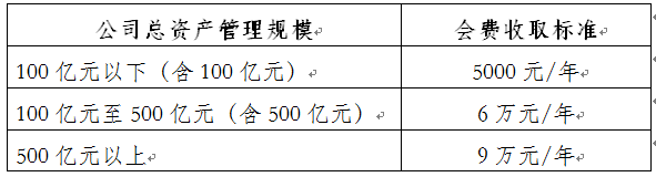 為進(jìn)一步構(gòu)建職業(yè)化、專業(yè)化、國(guó)際化的現(xiàn)代行業(yè)組織品牌形象,有效推進(jìn)公會(huì)各項(xiàng)工作,更好的為行業(yè)、為會(huì)員服務(wù),根據(jù)《上海市基金同業(yè)公會(huì)章程》和《上海市基金同業(yè)公會(huì)會(huì)費(fèi)收取辦法》,現(xiàn)開展2019年度會(huì)費(fèi)收繳工作,收費(fèi)標(biāo)準(zhǔn)如下: