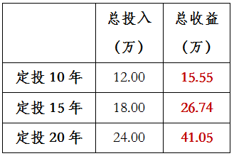 注2:每月1日定投1000元,至定投結(jié)束當月月末停止定投。按月度復(fù)利,定投總收益=,定投十年時k=120,定投十五年時k=180,定投二十年時k=240。