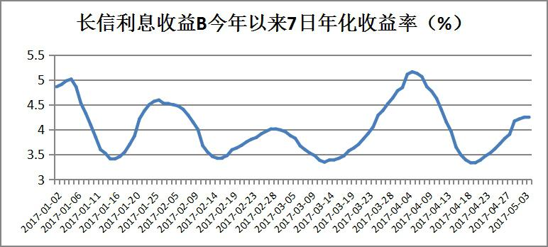 長信利息收益B有五個交易日的7日年化收益率突破了5%,最高一日達到5.16%,且在今年99個交易日中,有45%的交易日7日年化收益率站在4%以上,有80%的交易日維持在3.5%以上。