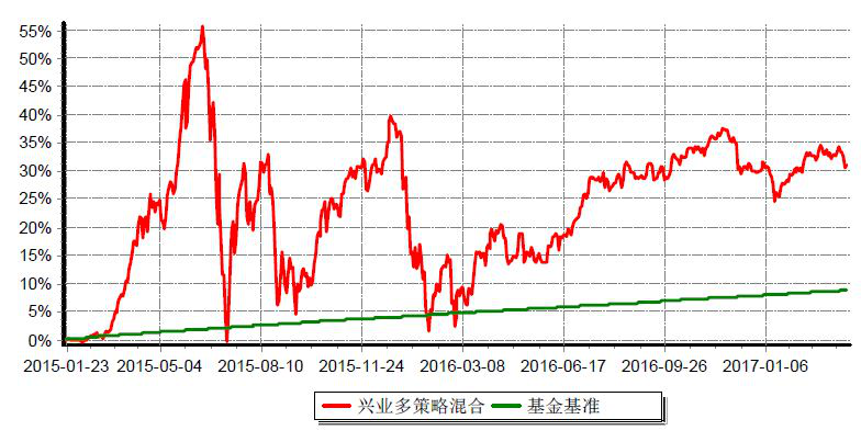興業(yè)多策略靈活配置混合型發(fā)起式證券投資基金累計凈值增長率與同期業(yè)績比較基準(zhǔn)收益率歷史走勢對比圖