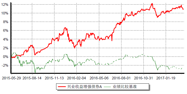 興業(yè)收益增強(qiáng)債券A累計凈值增長率與同期業(yè)績比較基準(zhǔn)收益率歷史走勢對比圖