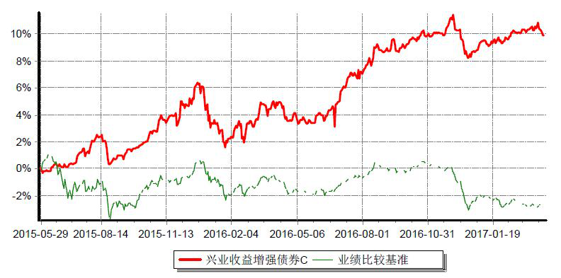 興業(yè)收益增強(qiáng)債券C累計凈值增長率與同期業(yè)績比較基準(zhǔn)收益率歷史走勢對比圖