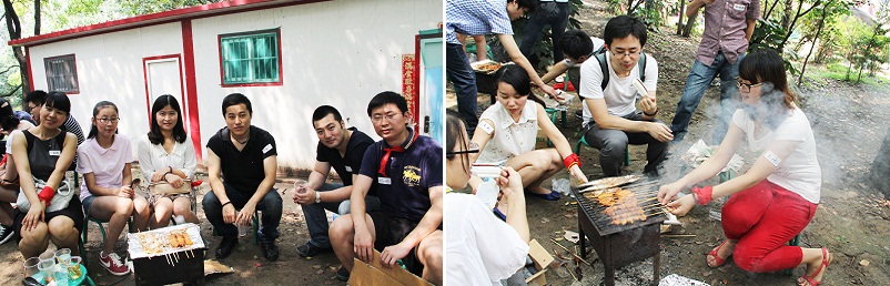 中午時(shí)分,巴士抵達(dá)了活動(dòng)目的地—共青森林公園?;顒?dòng)的第一項(xiàng)內(nèi)容,是自給自足的結(jié)隊(duì)燒烤。在帶隊(duì)老師的安排下,青年們按照男女比例原則隨機(jī)分為八個(gè)小組,各自領(lǐng)取烤爐、木炭和食材。開始了“艱難”的燒烤之旅,通過各自間的相互配合,各小組從開始的星星之火,到紅紅烈炭,最后呈現(xiàn)給小伙伴們美味燒烤,盡管場面狼藉,但別有一番趣味,兩個(gè)多小時(shí)的燒烤活動(dòng),在青年們的談笑風(fēng)生中漸漸溜走。