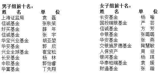 在暴走愛好者盡情享受的健康和歡笑中,上海證監(jiān)局袁磊一馬當(dāng)先,以47分45秒的成績奪得了男子組冠軍,信誠基金張秋槳、好買基金薛年分獲二、三名。女子組比賽中,長安基金楊喻以59分05秒的成績奪得冠軍,國投瑞銀基金嚴(yán)蕓、信誠基金方芳分獲二、三名。所有參與者一致認(rèn)為,此次活動不進(jìn)讓大家有了難得的走出辦公室親近大自然的機(jī)會,更加深了對低碳環(huán)保理念的認(rèn)識,“低碳環(huán)保,每個人都不能置身事外?!敝挥写蠹夜餐袆悠饋?,藍(lán)天白云、繁星點(diǎn)點(diǎn)的夢想才能變成現(xiàn)實(shí)。