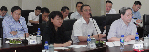 與會領(lǐng)導(dǎo)(左起):湯曉東副主任、張思寧局長、嚴伯進副局長、韓康副會長