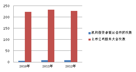 2010-2012年上海上市公司股東大會由機(jī)構(gòu)投資者提議召開的次數(shù)