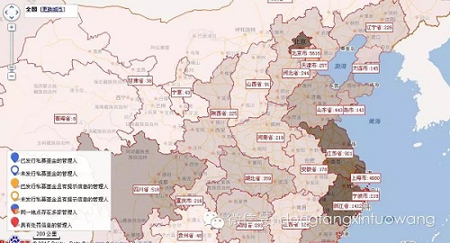 二、放大地圖,可以看到省內(nèi)各轄區(qū)基金管理人情況