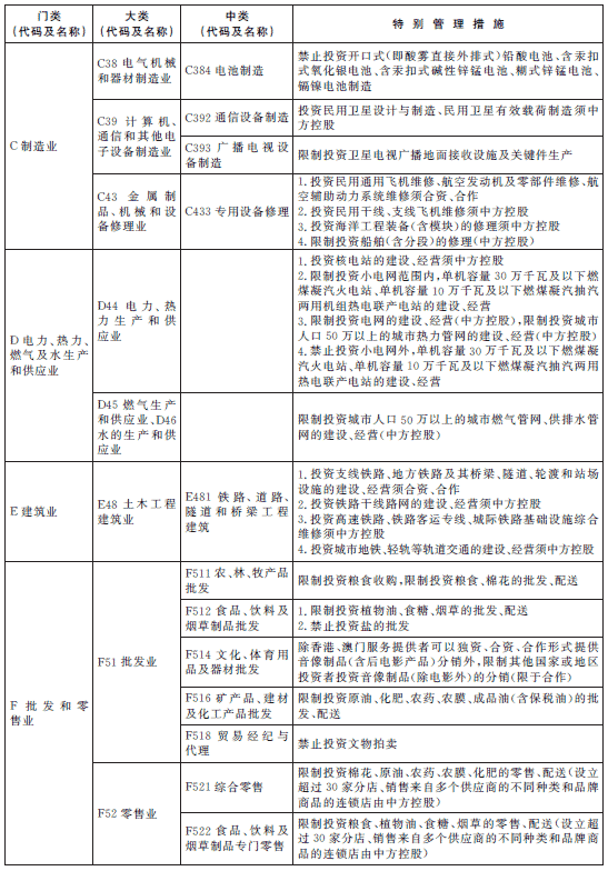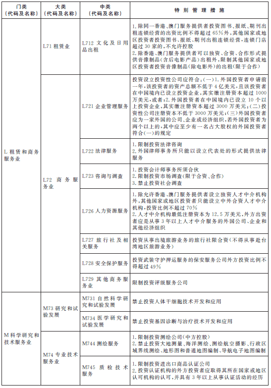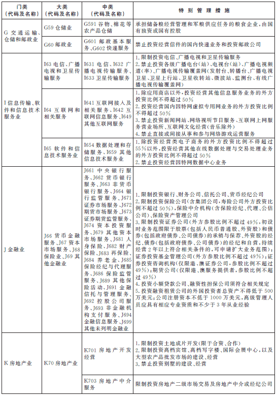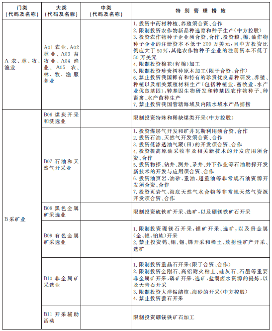 除列明的外商投資準入特別管理措施,禁止(限制)外商投資國家以及中國締結(jié)或者參加的國際條約規(guī)定禁止(限制)的產(chǎn)業(yè),禁止外商投資危害國家安全和社會安全的項目,禁止從事?lián)p害社會公共利益的經(jīng)營活動。