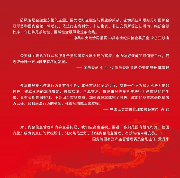 內(nèi)幕交易是資本市場(chǎng)的頑疾,侵蝕和破壞市場(chǎng)公開(kāi)、公平和公正的基本原則,嚴(yán)重?fù)p害了投資者尤其是中小投資者的合法權(quán)益。近年來(lái),我國(guó)資本市場(chǎng)內(nèi)幕交易呈現(xiàn)高發(fā)態(tài)勢(shì),已經(jīng)影響到資本市場(chǎng)改革與發(fā)展的進(jìn)程。在中央紀(jì)委、最高法、最高檢的大力支持下,中國(guó)證監(jiān)會(huì)、公安部、監(jiān)察部、國(guó)資委和預(yù)防腐敗局等有關(guān)部委在打擊和防控內(nèi)幕交易方面積極開(kāi)展工作,成效顯著,但要從根本上防治內(nèi)幕交易依然任重道遠(yuǎn),需要全社會(huì)的廣泛參與和大力支持。