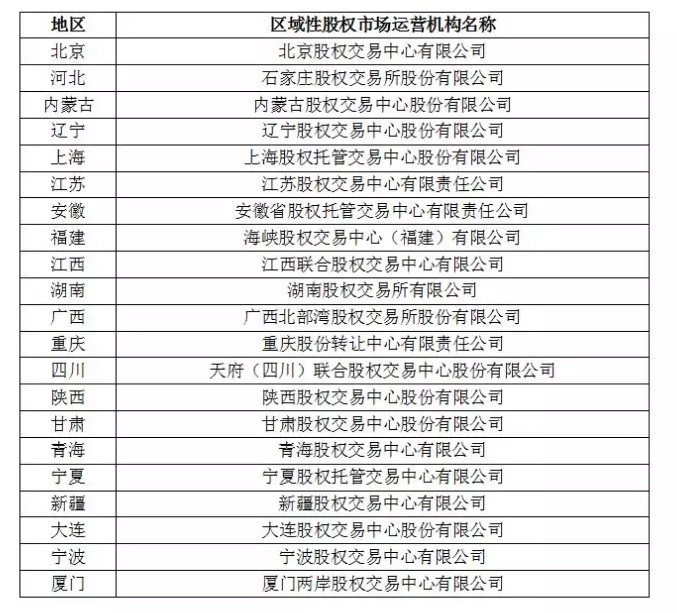 證監(jiān)會公示全國區(qū)域性股權(quán)市場運(yùn)營機(jī)構(gòu)備案名單(第一批)