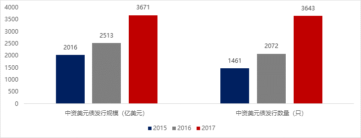 圖表4 17年中國(guó)企業(yè)海外發(fā)債步伐明顯加快,18年債務(wù)到期高峰,疊加人民幣貶值背景,更加劇了企業(yè)和市場(chǎng)的焦慮 |