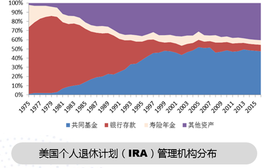 劉建平認(rèn)為,“堅持賬戶制、稅收制度設(shè)計合理、投教工作持續(xù)且充分”是美國養(yǎng)老制度中值得國人借鑒的地方。他表示,只有實(shí)行賬戶制,才能落實(shí)個人選擇權(quán)和多樣化投資,也是美國第三支柱最大的吸引力所在。目前IRA個人退休賬戶(individual retirement account)規(guī)模已超過DC(雇主養(yǎng)老保險計劃,通常也稱為401K計劃)。基于賬戶制的養(yǎng)老投資,更有利于將投資者引入場景化,類似余額寶,有利于培養(yǎng)投資者形成“繳費(fèi)”的習(xí)慣。