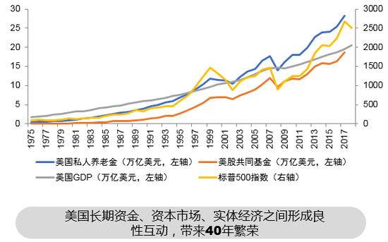 他表示,從海外經(jīng)驗(yàn)看,美國公募基金就直接受益于第三支柱養(yǎng)老稅優(yōu)政策。引入養(yǎng)老金稅收優(yōu)惠政策前的十年,美國公募基金規(guī)模的年化增長率僅為0.96%;而在引入稅優(yōu)政策后的十年間,美國公募基金規(guī)模年化增長率達(dá)到22.97%。其中,目標(biāo)日期型基金的收益最為顯著,其規(guī)模從1992年的80億美元增加到2016年的1.8萬億美元。美國長期資金、資本市場、實(shí)體經(jīng)濟(jì)之間形成良性互動,促進(jìn)了此后40年的經(jīng)濟(jì)繁榮。