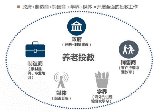 第二,養(yǎng)老產(chǎn)品營銷方面,劉建平建議更多地運(yùn)用場景化模式,給投資者一個專門放養(yǎng)老錢的電子錢包,并讓客戶形成“繳費(fèi)”的習(xí)慣。在銀行等銷售渠道中,建議把養(yǎng)老投資業(yè)務(wù)作為與存款、理財、保險、貴金屬、基金等并列的一類業(yè)務(wù),配套考核激勵政策。