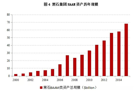 黑石集團(tuán)(Blackstone Group)又名佰仕通集團(tuán),于1985年由前雷曼兄弟公司高層彼得·皮特森(Peter G. Peterson)和老下級史蒂芬·施瓦茨曼(Stephen A. Schwarzman)共同創(chuàng)立,是全世界最大的獨立另類資產(chǎn)管理機(jī)構(gòu)之一,也是一家金融咨詢服務(wù)機(jī)構(gòu)。其另類資產(chǎn)管理部門(BAAM)成立于1990年,主要根據(jù)不同客戶需求提供定制地對沖基金解決方案。截止2015年9月30日BAAM資產(chǎn)規(guī)模已經(jīng)達(dá)到690億美元,50%的資產(chǎn)投資于為客戶提供的定制化對沖基金解決方案。不僅如此,黑石集團(tuán)還將自身利益與客戶利益保持高度一致,與客戶建立長期關(guān)系。