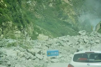 震區(qū)的崎嶇山路