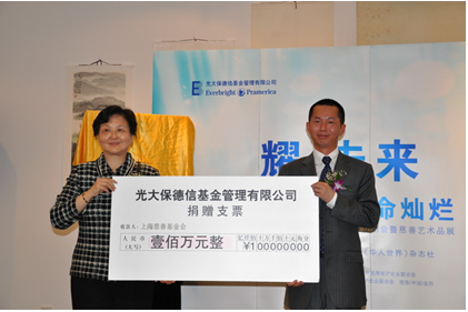 2013年4月即光大保德信成立9周年紀(jì)念日,公司向“耀未來慈善專項基金”繼續(xù)注資107萬元人民幣。