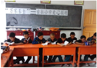 2011年,愛心捐助給予地處偏遠(yuǎn)深山的古拉鄉(xiāng)中心小學(xué)。所捐助物資包含115種圖書,13種體育用品和2類教具,一本本書籍代表了萬家基金炙熱的公益心,小小的善舉匯聚成了愛的海洋。