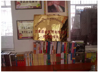 2010年,萬家基金用該筆愛心捐助為西藏林芝縣完全小學(xué)援建了希望圖書角,并捐助了88類圖書和8種體育用品。所捐書籍涵蓋詞典類、童話類、兒童名著類、兒童科普類等。萬家基金旨在拓寬孩子們的視野,積極引導(dǎo)孩子們成長。