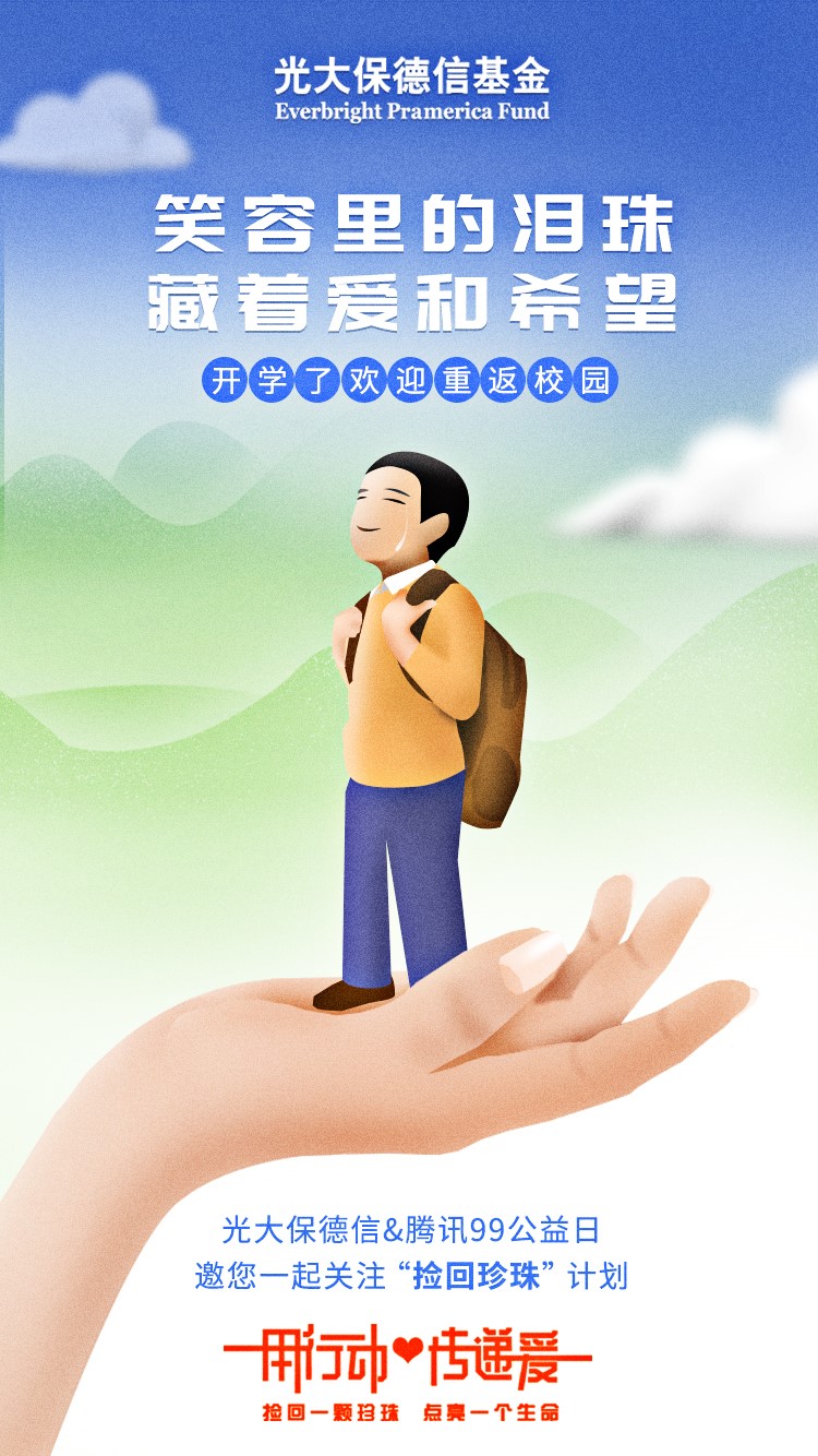 時(shí)值一年一度的“99公益日”已經(jīng)落下帷幕,光大保德信基金助力由浙江省新華愛基會(huì)發(fā)起的公益項(xiàng)目——撿回珍珠計(jì)劃,在9月7日—9月9日入駐騰訊平臺(tái),旨在關(guān)注這些品學(xué)兼優(yōu)但因家庭貧困而面臨輟學(xué)的孩子,通過募集善款捐助,幫助他們重返校園。