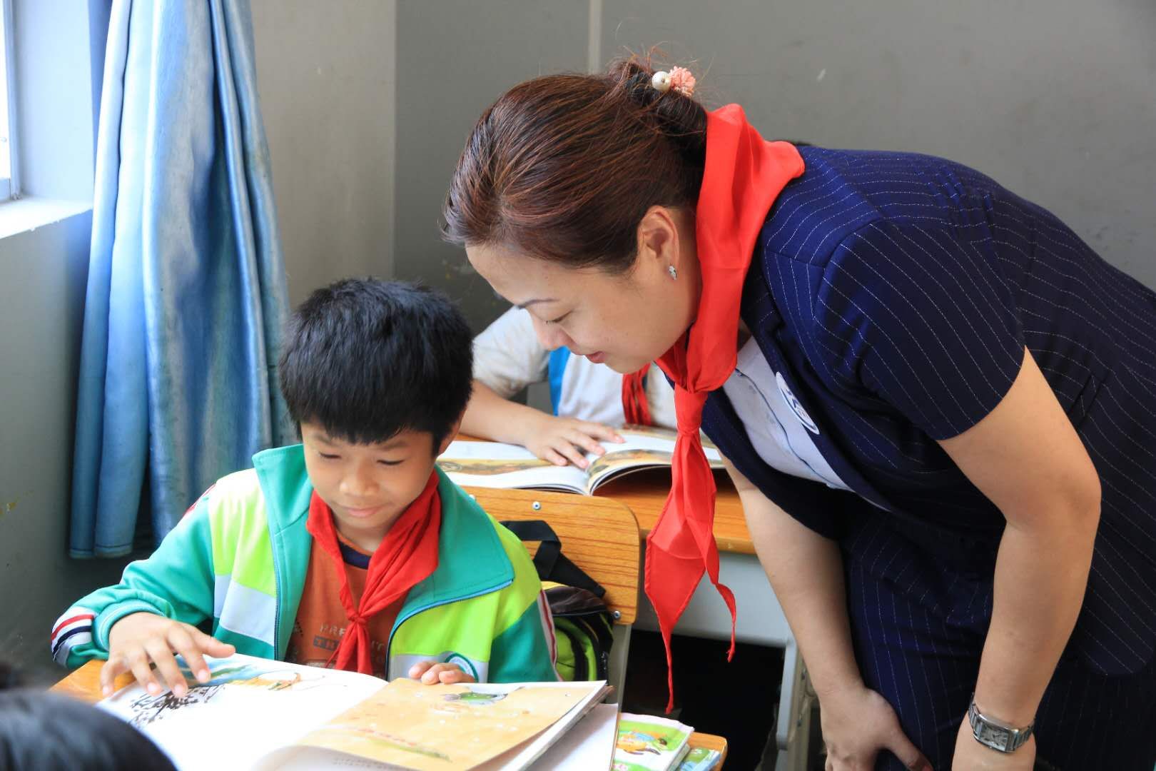 24日下午,國海富蘭克林基金一行赴2018年獲贈圖書角的作登瑤族鄉(xiāng)大板希望學(xué)校進(jìn)行回訪和支教,與校長和教師代表深入了解圖書角的使用情況、學(xué)校閱讀建設(shè)情況和孩子們的讀書習(xí)慣。大板希望學(xué)校校長陸德官表示,孩子們的求知欲和好奇心都很強(qiáng),學(xué)校也非常重視閱讀引導(dǎo)和語言教學(xué),“通過組織朗誦比賽、講故事比賽、圖書分享等多種形式,孩子們的語言表達(dá)能力、自信心和表現(xiàn)力顯著提高,邏輯思維能力也有很大進(jìn)步,中低年級的孩子們逐漸能夠在看完繪本后復(fù)述甚至延伸講出一個(gè)新的故事”,陸德官說。田東縣教育局長黃忠義表示,少年兒童“經(jīng)常在玩手機(jī)和看書之間徘徊”,而手機(jī)信息往往是碎片化信息,太過雜亂,還有一些片面甚至極端的信息,對孩子們“有效閱讀”效果不明顯,孩子們在少年時(shí)期還是應(yīng)當(dāng)回歸書本;老師們在其中應(yīng)扮演“有協(xié)助能力的大人”的角色,既要推薦優(yōu)秀書籍,也要充分考慮不同年齡段孩子的興趣,并及時(shí)與孩子們溝通閱讀感受,進(jìn)行正向反饋和引導(dǎo)。